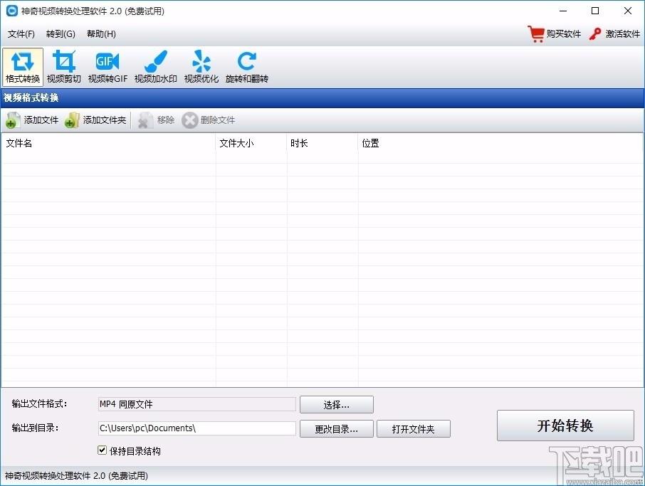 神奇视频处理软件是一款功能强大且免费的视频处理工具,可帮助用户快速将视频文件进行处理,软件功能丰富,且显示在同一界面,便于用户快速进行选择,集格式转换、视频剪切、视频转GIF、视频加水印、视频优化、旋转和翻转六大功能于一体,满足您对视频处理的不同需求,使用起来非常方便,而且每个功能的操作都非常简单,拥有单独的操作界面,快速对视频进行多种不同的操作,输出您需要的视频文件,达到您满意的效果,总之这是一款非常好用的软件,如果您有需要,那就赶快下载体验一下吧!